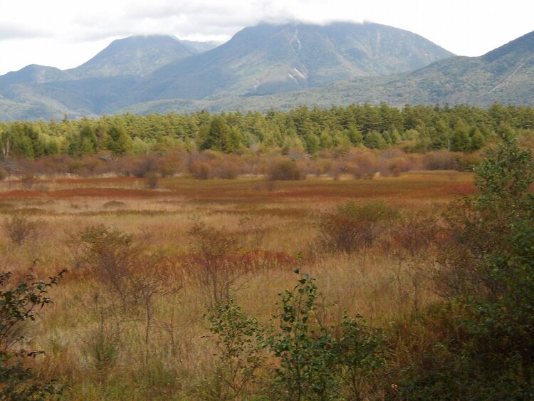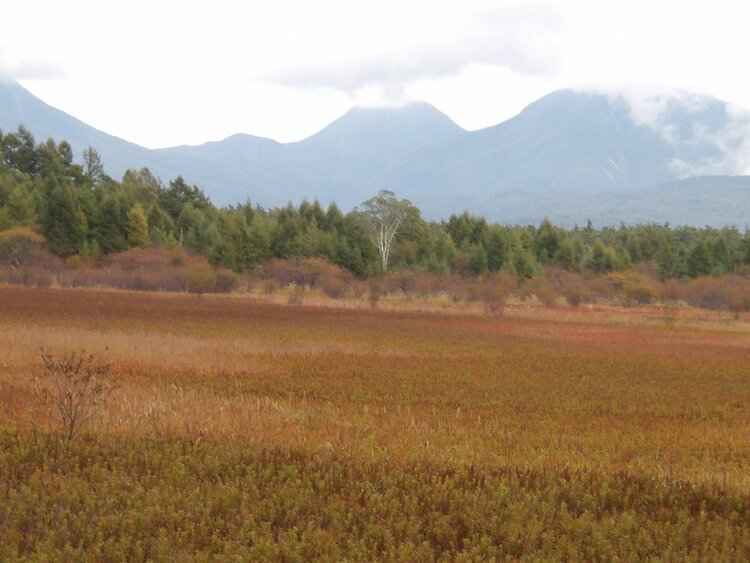 貴婦人前の様子です。小田代原の独特の縞模様が出現しています。薄紅色に変化しているところもありこれからの草紅葉が楽しみです。