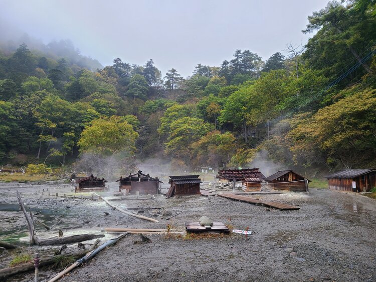 泉源周辺。こちらはまだまだ緑色。