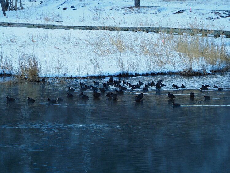 1月7日時点での湯ノ湖の水鳥情報をお伝えします。湯ノ湖周辺は今朝は-14度近くまで冷え込み、湖面の約9割が結氷しています。今回確認できた種類は以下の通りです。・オオバン・ホシハジロ・キンクロハジロオオバンが最も多く確認されました。