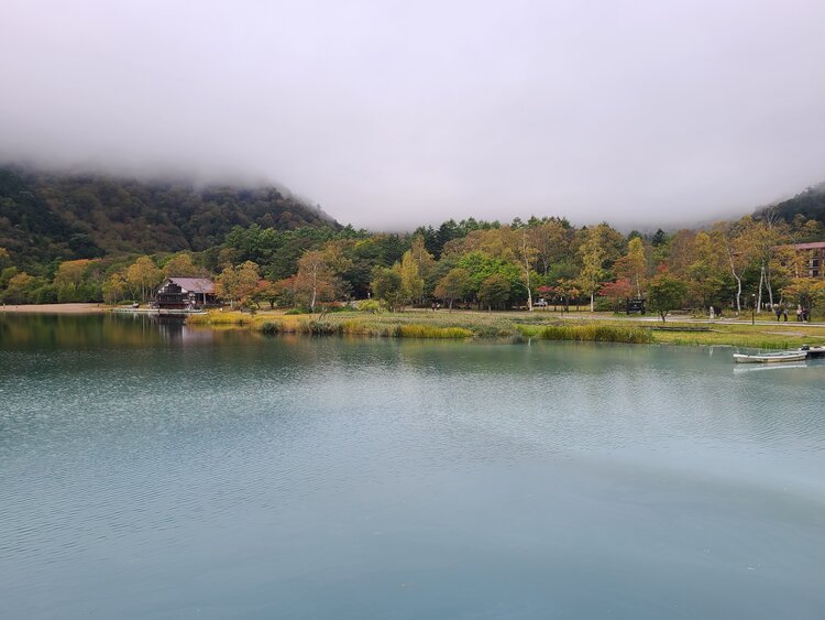 湯ノ湖の国道側から見た湯元温泉街。ここからの景色が、今は一番秋の深まりを感じます。