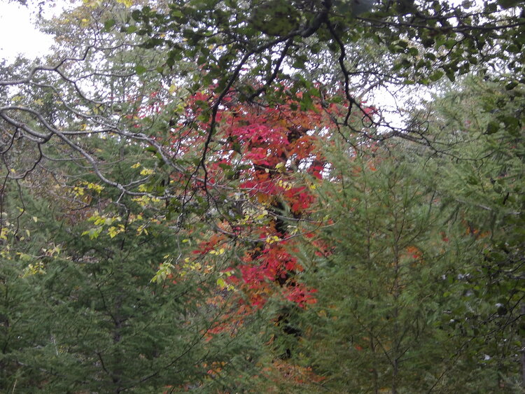 紅葉は画像のツタウルシなど一部色づき始めている木もありますが、緑色の木々がまだ多い状況です。
